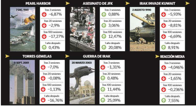 ¿Y si estalla la guerra? las caídas en bolsa históricamente solo son los primeros días y después las bolsas repuntan, una guerra no es malo para la bolsa, claro cada evento es diferente pero si nos remontamos a la historia…