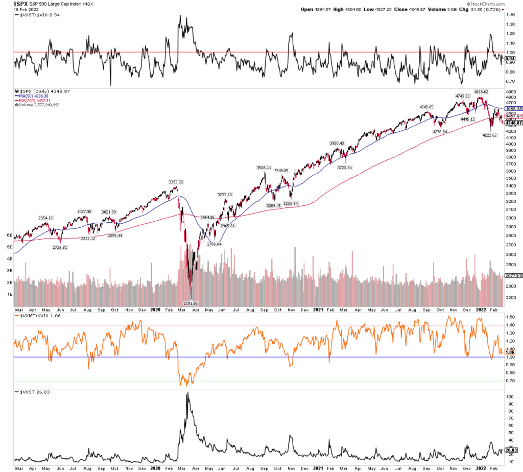 A pesar de que la volatilidad ha subido esta semana con el tema de Rusia, la volatilidad mas corta de 9 dias se ha mantenido por debajo de la zona critica , también la de 3 y 6 meses permanece sin romper, respetar ese nivel o rompimiento en falso impulsaría un repunte en el mercado