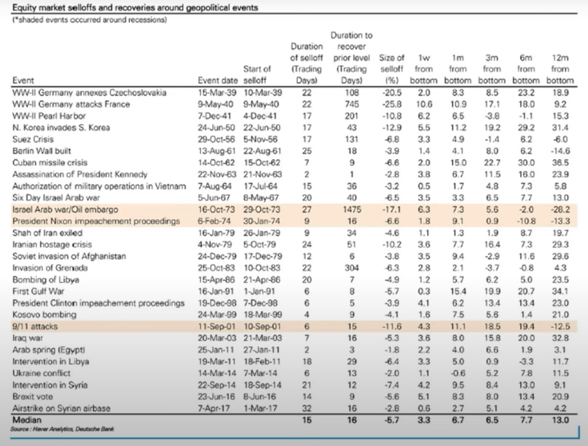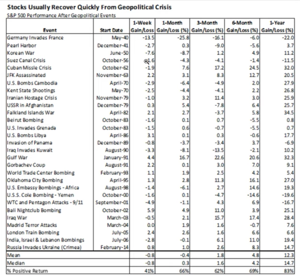 ¿Y si estalla la guerra? las caídas en bolsa históricamente solo son los primeros días y después las bolsas repuntan, una guerra no es malo para la bolsa, claro cada evento es diferente pero si nos remontamos a la historia…