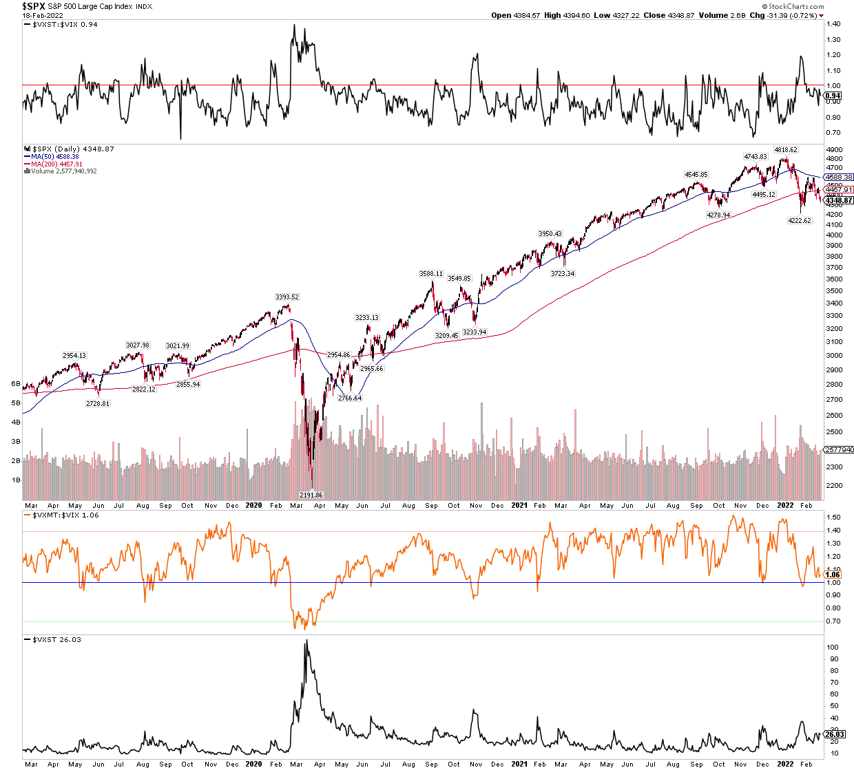 A pesar de que la volatilidad ha subido esta semana con el tema de Rusia, la volatilidad mas corta de 9 dias se ha mantenido por debajo de la zona critica , también la de 3 y 6 meses permanece sin romper, respetar ese nivel o rompimiento en falso impulsaría un repunte en el mercado