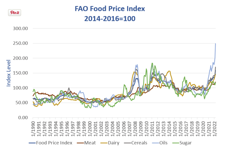 El índice de precios de los alimentos de la FAO (FFPI) es una medida del cambio mensual en los precios internacionales de una canasta de productos alimenticios.