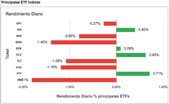 Nuestro filtro indica que los principales etf de indices americanos han roto a la baja lo cual nos pone en señal de precaución.