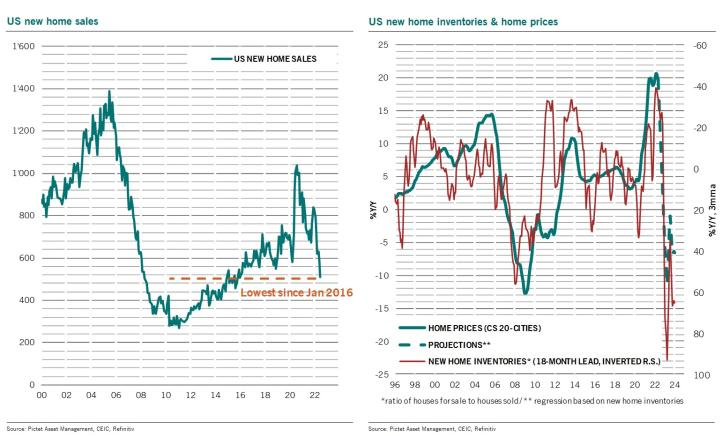 Las ventas de casas nuevas en #EE.UU. se desploman a su nivel más bajo desde enero de 2016. El fuerte aumento resultante en los inventarios de viviendas nuevas, que históricamente ha liderado los precios de las viviendas en 1,5 años, apunta a una caída de los precios de las viviendas entre un 5 % y un 10 % anual para fines del próximo año.