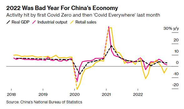 PIB chino interanual real 2,9 % (pronóstico 1,6 %, anterior 3,9 %)