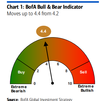 El indicador Bull & Bear de BofA alcanza su nivel más alto desde febrero de 2022.