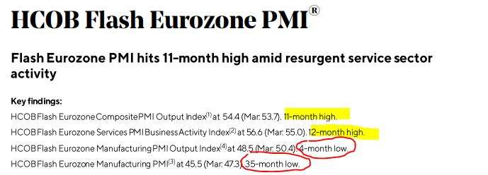 Aún así, el PMI manufacturero en mínimos de 35 meses y la producción manufacturera en mínimos de 4 meses.