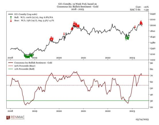 La incertidumbre política ha ayudado a empujar a los alcistas de $GLD del oro a niveles que históricamente son un mejor lugar para ser cautelosos que agresivos