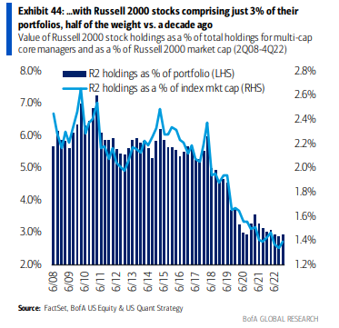 Las acciones de Russell 2000 comprenden solo el 3% de las carteras principales de capitalización múltiple, la mitad del peso en comparación con hace una década.