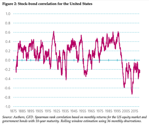 Para el período posterior a 1952, con bancos centrales independientes, se observa una correlación positiva entre acciones y bonos durante los periodos de alta inflación y altos rendimientos reales en letras del Tesoro
