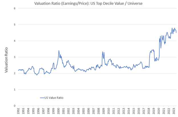 Conoce el valor del comercio en Estados Unidos El diferencial entre las acciones de valor y el resto del universo bursátil se encuentra en niveles históricamente amplios