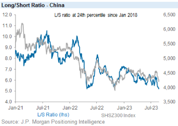 La relación largo/corto de China muestra que el posicionamiento sigue siendo débil y que las acciones siguen siendo vendidas a nivel local y por parte de los fondos de cobertura.