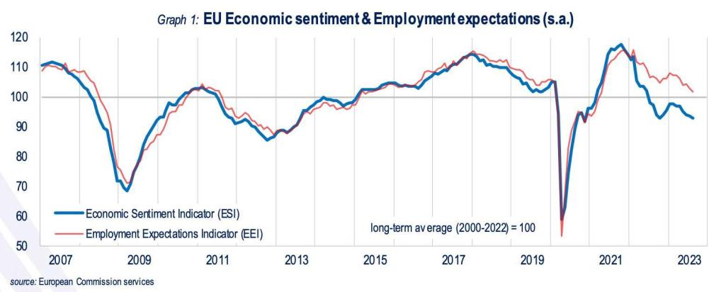 El sentimiento económico y las expectativas de empleo en la UE y la zona del euro continuaron deteriorándose en agosto Conductores: menor confianza del consumidor Menor confianza de los gerentes de servicios/comercio minorista/construcción. Planes de empleo menos optimistas entre los servicios, el comercio minorista y los directores de construcción. Repunte de las expectativas de precios al consumo para los próximos 12 meses. Las mayores caídas de sentimiento se produjeron en Francia, Alemania e Italia.