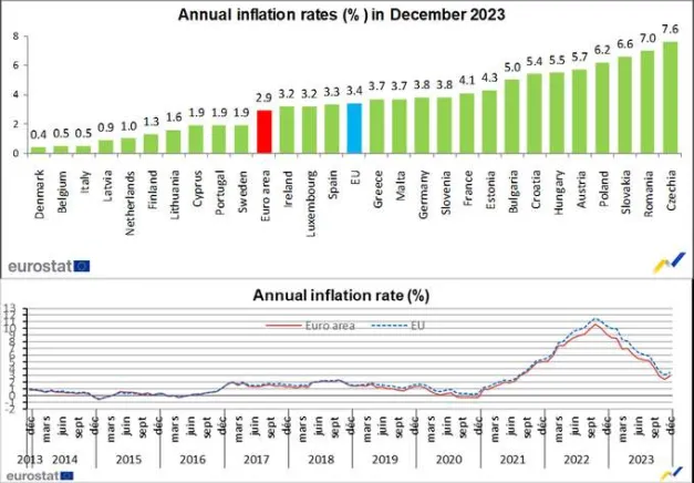 Inflación de la Eurozona Estable: 2.9% Interanual