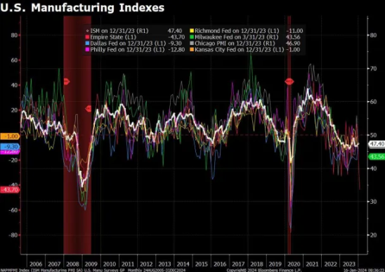 Si te fascinan las caídas abruptas, esta semana ha sido interesante para ti. La Encuesta Manufacturera del Empire State (Nueva York) en los Estados Unidos experimentó una caída considerable en enero, alcanzando su tercer nivel más bajo en la historia, superando incluso los niveles vistos durante la Gran Crisis Financiera. Según un gráfico, este descenso pronunciado en la Encuesta Empire State sugiere un índice de gerentes de compras (ISM) manufacturero inferior a 40. ¿Podría esto indicar que se avecina una recesión?