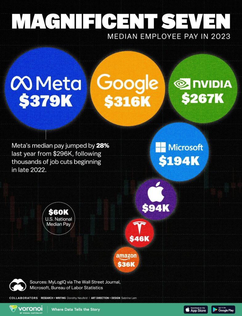En este artículo, vamos a explorar el salario medio en estas Siete Magníficas Compañías.